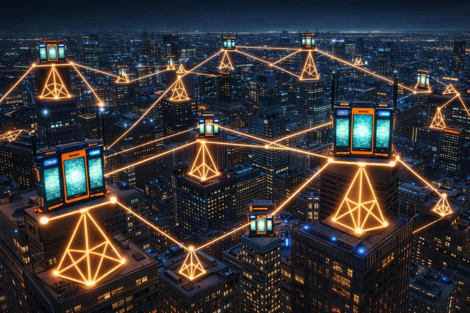 Multiple CODA networks can cooperate to expand range while remaining independent and secure using Transponders.Trusted relay devices link neighboring teams, forming a resilient communication mesh across large areas.