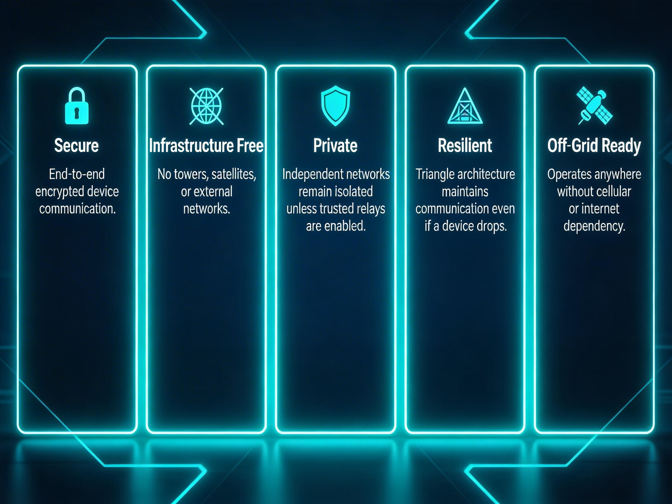 CODA is built for the moments when communication cannot fail — when infrastructure is unavailable, unreliable, or compromised.By enabling secure, device-to-device networks that operate independently of towers, satellites, or centralized systems, CODA ensures teams can stay connected when it matters most.We are actively advancing development and seeking pilot partners, collaborators, and investment to bring resilient communication systems into real-world use.
